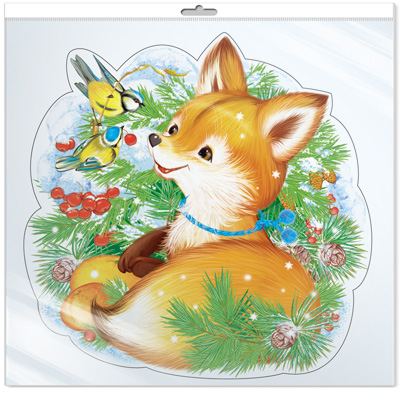 *ФМ1-12937 ПЛАКАТ ВЫРУБНОЙ А4 В ПАКЕТЕ. Лисенок в дарах зимы (в индивидуальной упаковке, с европодвесом и клеевым клапаном)
