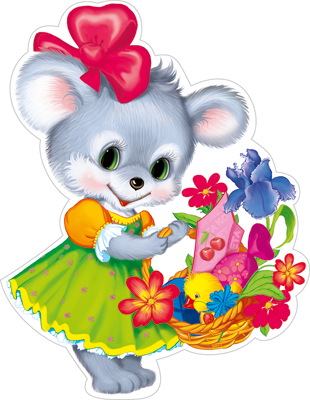 ФМ-13899 Плакат вырубной А4 Мышка с корзинкой цветов (УФ-лак) - группа Животные