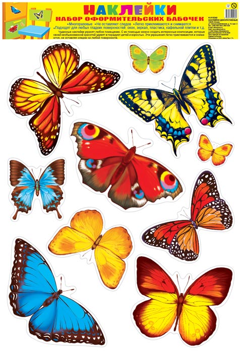 *Н-13240 НАКЛЕЙКИ А3+ В ПАКЕТЕ. Набор оформительских бабочек (УФ-лак, в индивидуальной упаковке, с европодвесом и клеевым клапаном)