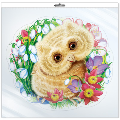 *ФМ1-13223 ПЛАКАТ ВЫРУБНОЙ А4 В ПАКЕТЕ. Совенок весенний (УФ-лак, в индивидуальной упаковке, с европодвесом и клеевым клапаном)