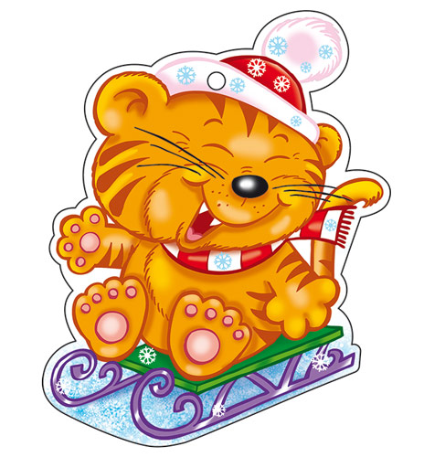 ФМ-13933 Плакат вырубной А4. Тигренок с новогодними конфетами (блестки в лаке)