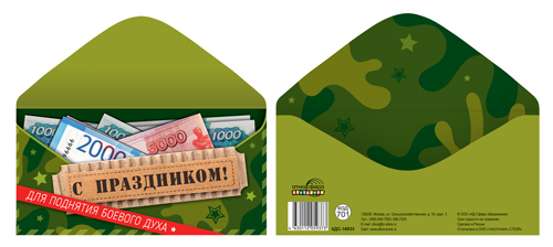 КДС-16922 Конверт для денег на склейке. 23 февраля. День защитника Отечества