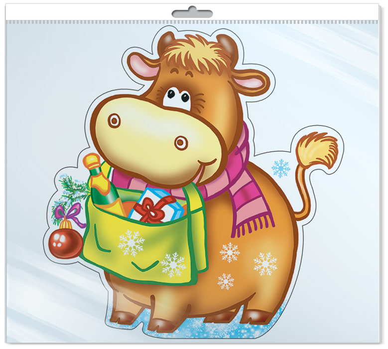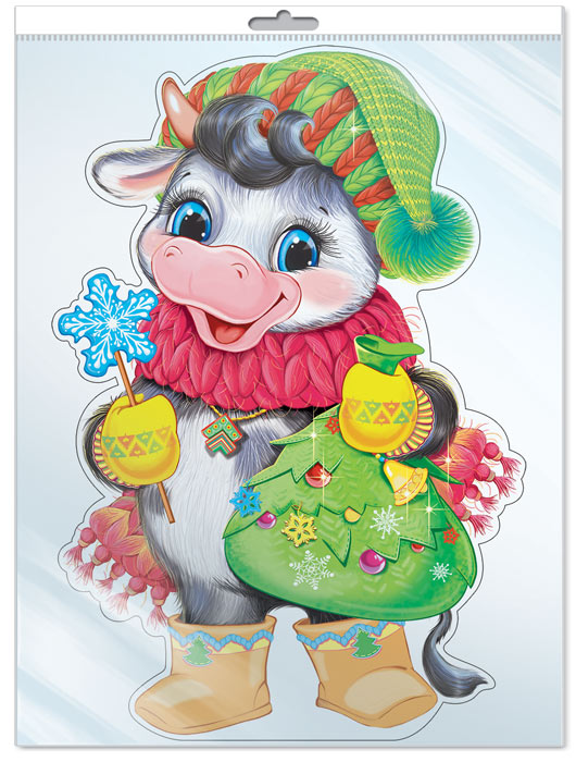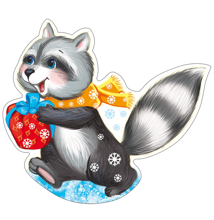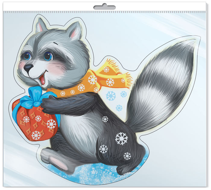 *ФМ-13428 ПЛАКАТ ВЫРУБНОЙ А4 В ПАКЕТЕ. Енот новогодний (блестки в лаке, в индивидуальной упаковке, с европодвесом и клеевым клапаном)