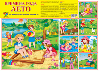 Демонстрационный плакат СУПЕР А2 Времена года: Весна. Что делают дети весной (1 большая картинка и 7 небольших)