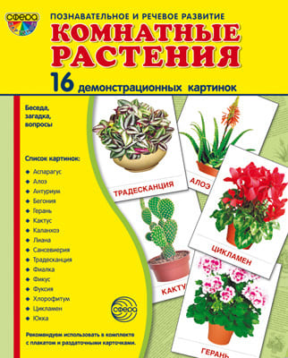 Дем. картинки СУПЕР Комнатные растения. 16 раздаточных карточек с текстом на обороте (учебно-методическое пособие с комплектом демонстрационного материала 63х87 мм, познавательное и речевое развитие)