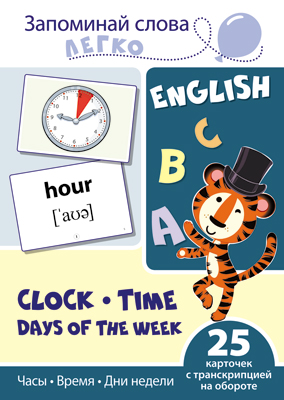 Запоминай слова легко. Часы, время, дни недели. 25 карточек с транскрипцией