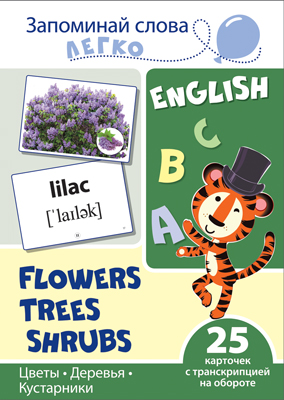 Запоминай слова легко. Цветы, деревья, кусты. 25 карточек с транскрипцией на обороте
