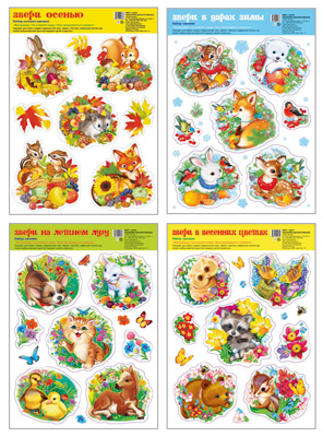 *КБН-14646 Комплект декоративных наклеек А4. Звери в дарах природы (4 набора наклеек в комплекте)
