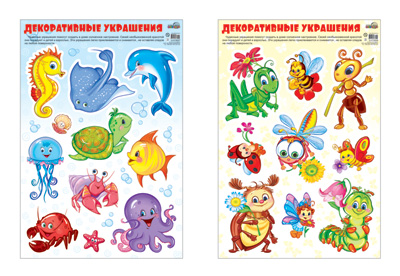 *КБН-13381 Комплект декоративных наклеек формата А3. Веселые насекомые. Веселые морские обитатели