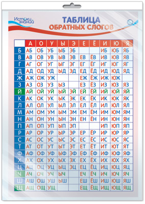 *ПЛ-14096 ПЛАКАТ А3 В ПАКЕТЕ. Таблица Обратных слогов (в индивидуальной упаковке, с европодвесом и клеевым клапаном)