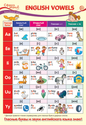 ПО-13585 Плакат А3. Английский язык во 2 классе. English Vowels (Английские гласные)