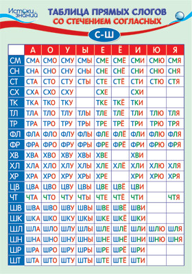 ПЛ-14099 Плакат А3. Таблица Прямых слогов со стечением согласных С-Ш