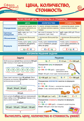 ПО-14350 ПЛАКАТ А3. Математика в 4 классе. Цена,количество,стоимость