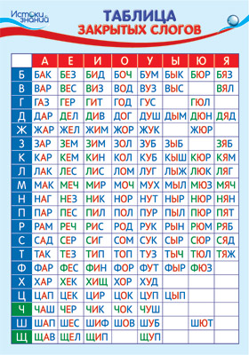 ПЛ-14100 Плакат А3. Таблица Закрытых слогов