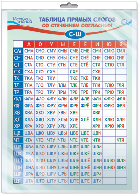 *ПЛ-14099 ПЛАКАТ А3 В ПАКЕТЕ. Таблица Прямых слогов со стечением согласных С-Ш (в индивидуальной упаковке, с европодвесом и клеевым клапаном)