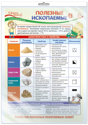 *ПО-14406 ПЛАКАТ А3 В ПАКЕТЕ. Окружающий мир в 4 классе. Полезные ископаемые 2 (в индивидуальной упаковке, с европодвесом и клеевым клапаном)