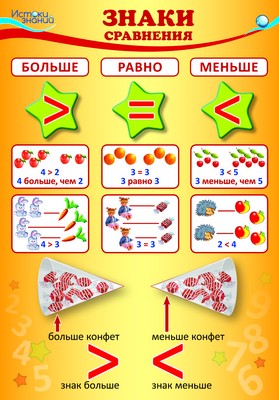ПЛ-9639 Плакат А3. Знаки сравнения (больше, равно, меньше)
