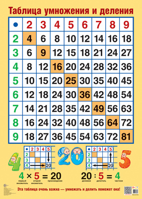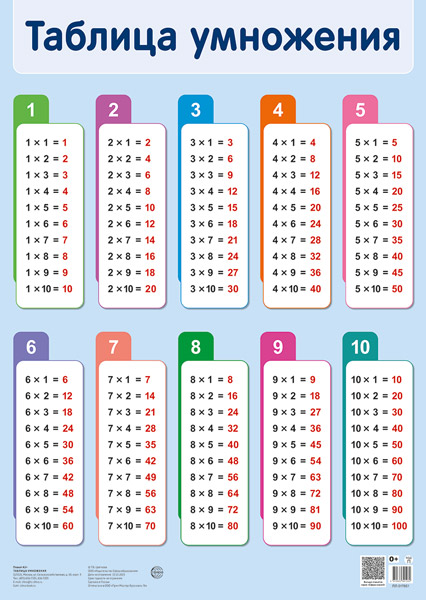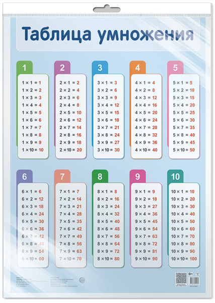 *ПЛ-10776 Плакат А2. Таблица умножения и деления (в индивидуальной упаковке с европодвесом и клеевым клапаном)