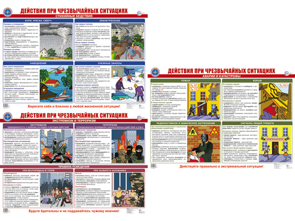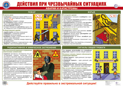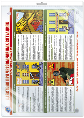 *КБ-17025 Комплект ЛАМИНИРОВАННЫХ плакатов А2. Действия при чрезвычайных ситуациях (3 плаката)