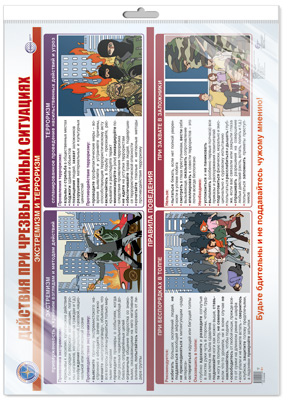 ПЛ-16359 Плакат А2 ЛАМИНИРОВАННЫЙ. Действия при чрезвычайных ситуациях. Экстремизм и терроризм