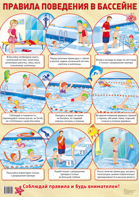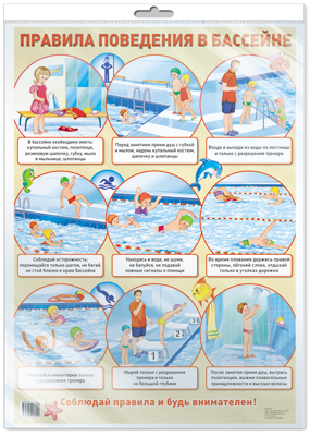 *Демонстрационный плакат А2. Правила поведения в бассейне (в индивидуальной упаковке с европодвесом и клеевым клапаном)