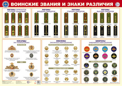 ПЛ-17372 Плакат А2 ЛАМИНИРОВАННЫЙ. Воинские звания и знаки различия
