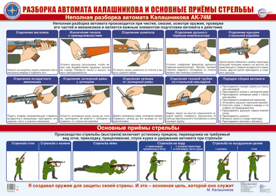 ПЛ-15774 Плакат А2 ЛАМИНИРОВАННЫЙ. Разборка автомата Калашникова и основные приемы стрельбы