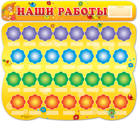Стенд НАШИ РАБОТЫ (с пластиковым карманом и 30 пластиковых полочек для детских работ) формат А2