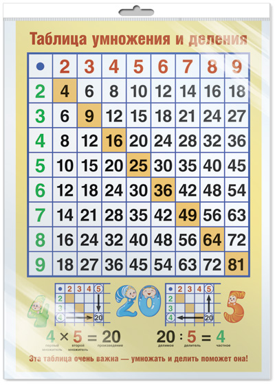 *ПЛ-10776 Плакат А2. Таблица умножения и деления (в индивидуальной упаковке с европодвесом и клеевым клапаном)